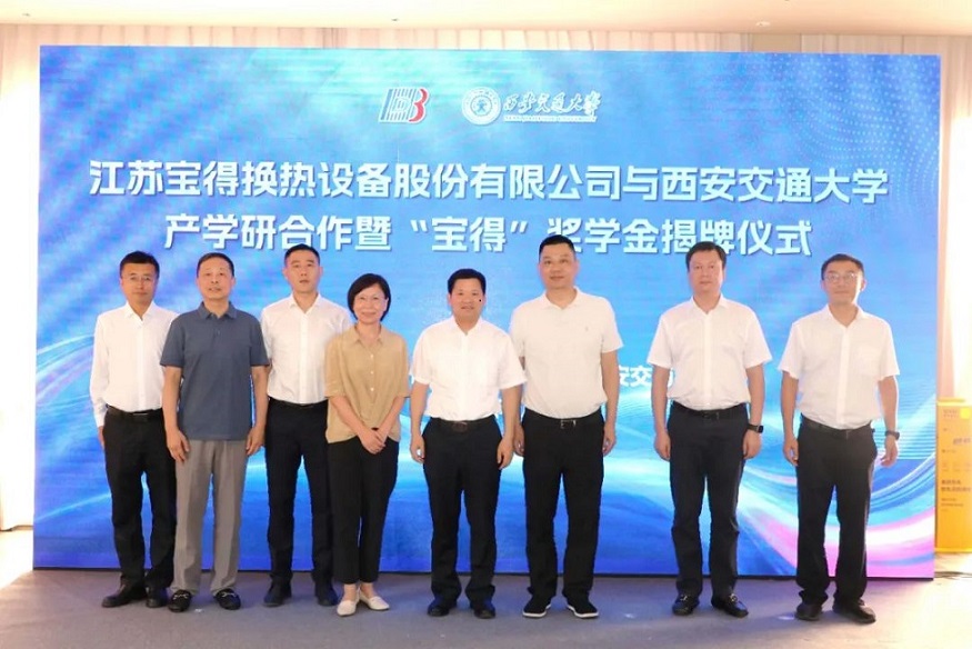 8月18日下午,江蘇寶得換熱設(shè)備股份有限公司與西安交通大學(xué)簽署產(chǎn)學(xué)研合作協(xié)議及“寶得”獎學(xué)金揭牌儀式在江陰成功舉行。 出席儀式的領(lǐng)導(dǎo)與嘉賓包括:江陰市人民政府副市長季震,西安交通大學(xué)校長助理黃...